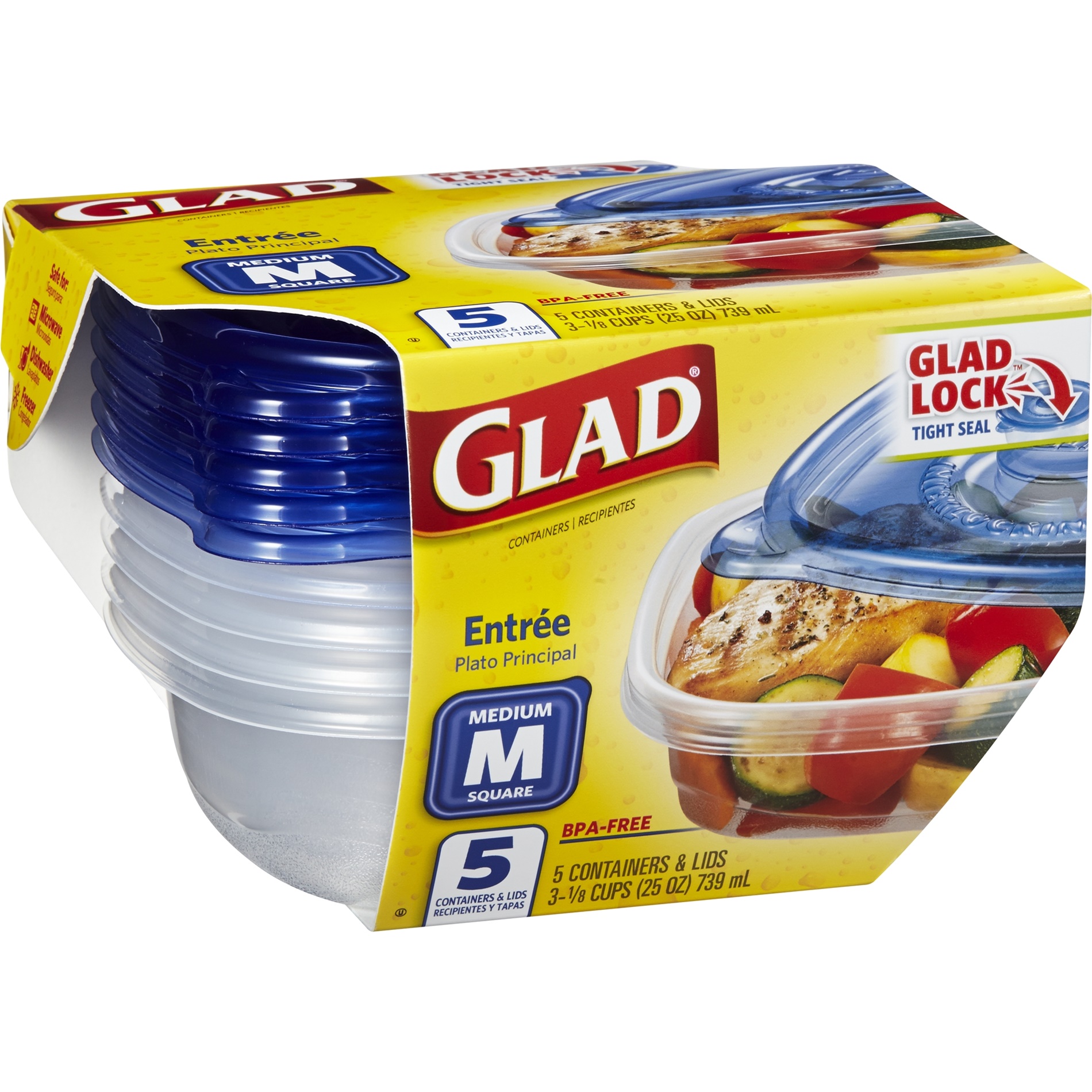 Lids easily snap on tightly but are also easily removed when needed. With glad reusable food containers you can prepare for multiple meals and salads on the go with 5 food storage containers and 5 lids reusable food storage. Glad food storage soup and salad 24 ounce containers works well for freezing extra food storing cut fruit or keeping baked goods fresh.