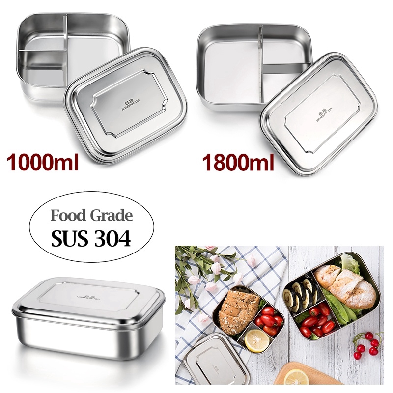 304 Stainless Steel Lunch Box Bento Box With 3 Divider Food
