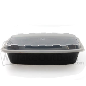 28 Oz Rectangular Plastic Food Container Black Base Clear Lid