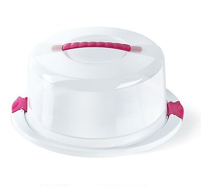 Portable Round Cake Dome Holder Container Carrier Handle Clip