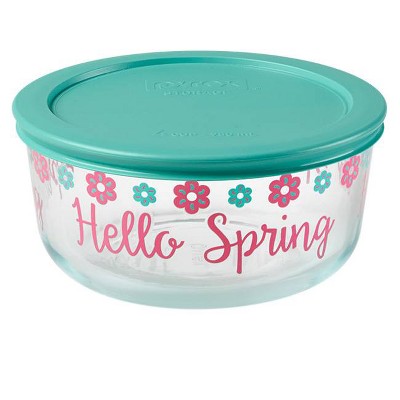 Pyrex 4 Cup Glass Happy Spring Food Storage Container Turquoise