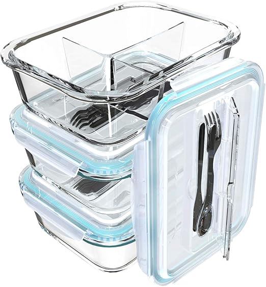 Amazon Com Glass Meal Prep Containers 3 Compartment Bento Box