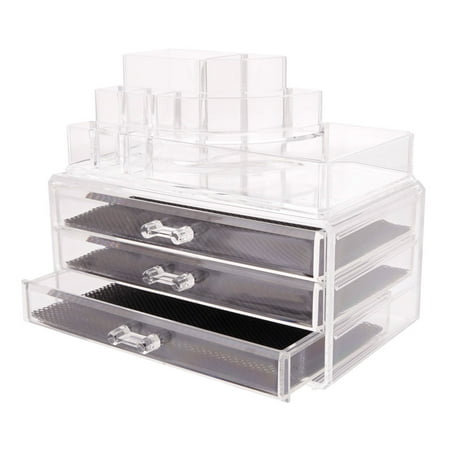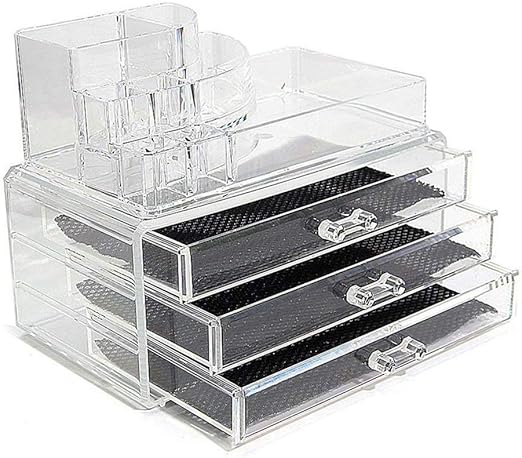 Women Acrylic Makeup Organizer Storage Box 3 Drawer Clear Plastic