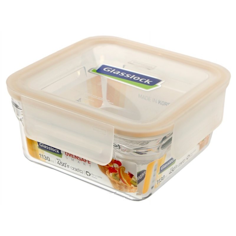 Glasslock Food Container 1130ml Square Ring Taper Oven Safe Smart