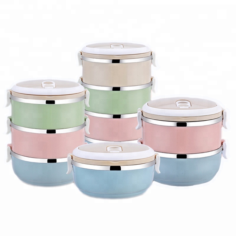 Stainless Steel Lunch Box 2 Tier Indian Tiffin Round Food
