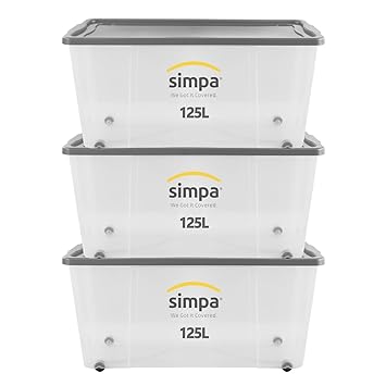 3 X Simpa 125 Litre 125l Large Plastic Wheeled Storage Box With