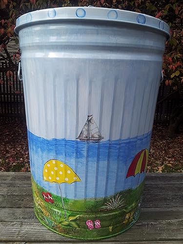 Storage Bins 20 Gallon Hand Painted Galvanized Trash Can Baskets
