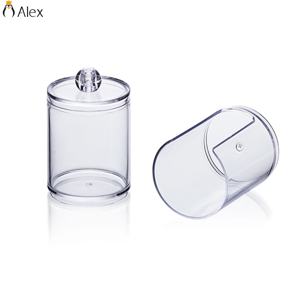 2 Acrylic Round Container Box Storage Manager Swabs Cosmetic Boxes