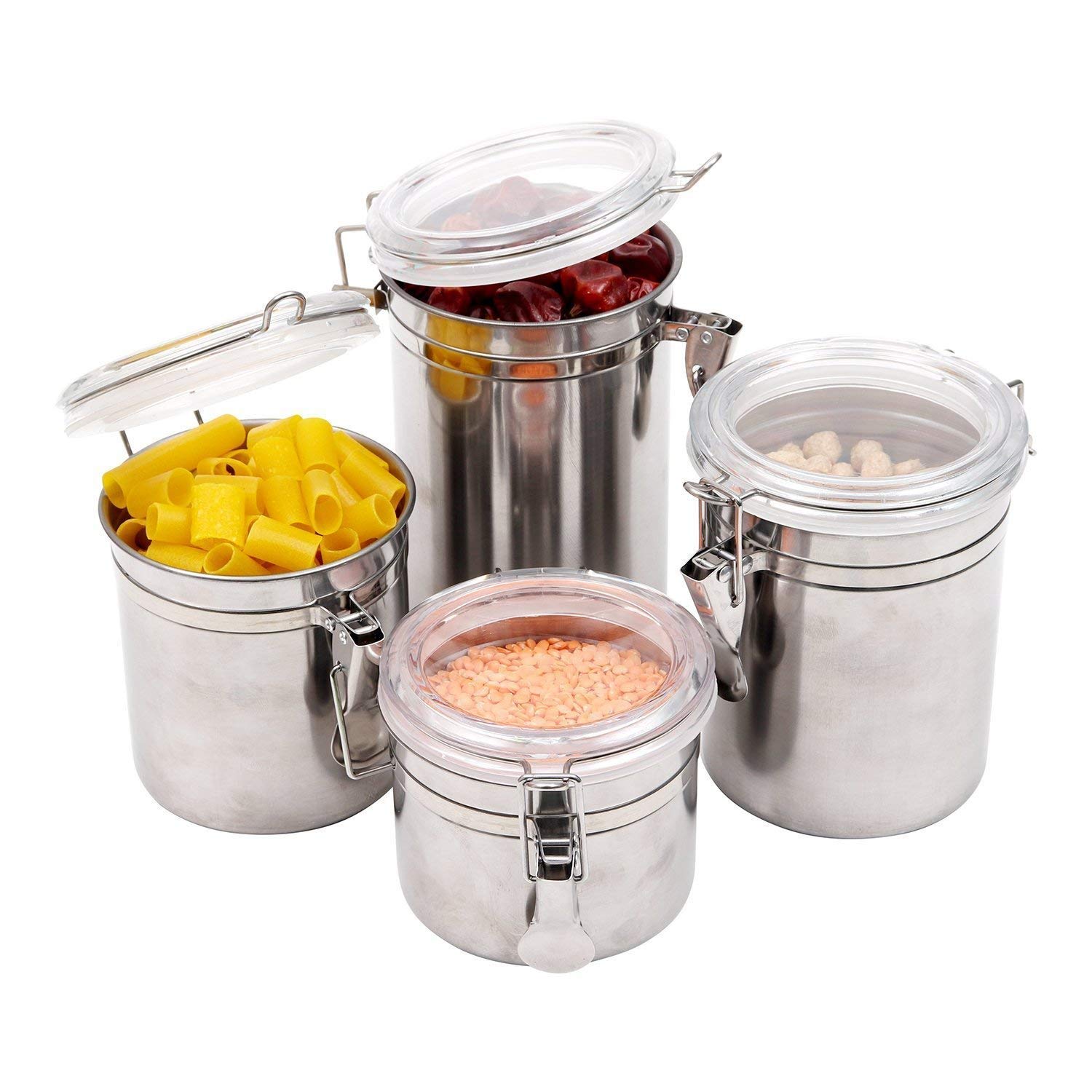 Zanzer Stainless Steel Canister Set With Airtight Lids And Glass