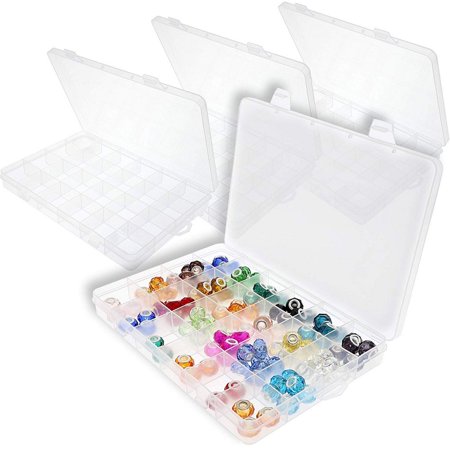 4 Pack Plastic Jewelry Bead Storage Container Box With Dividers