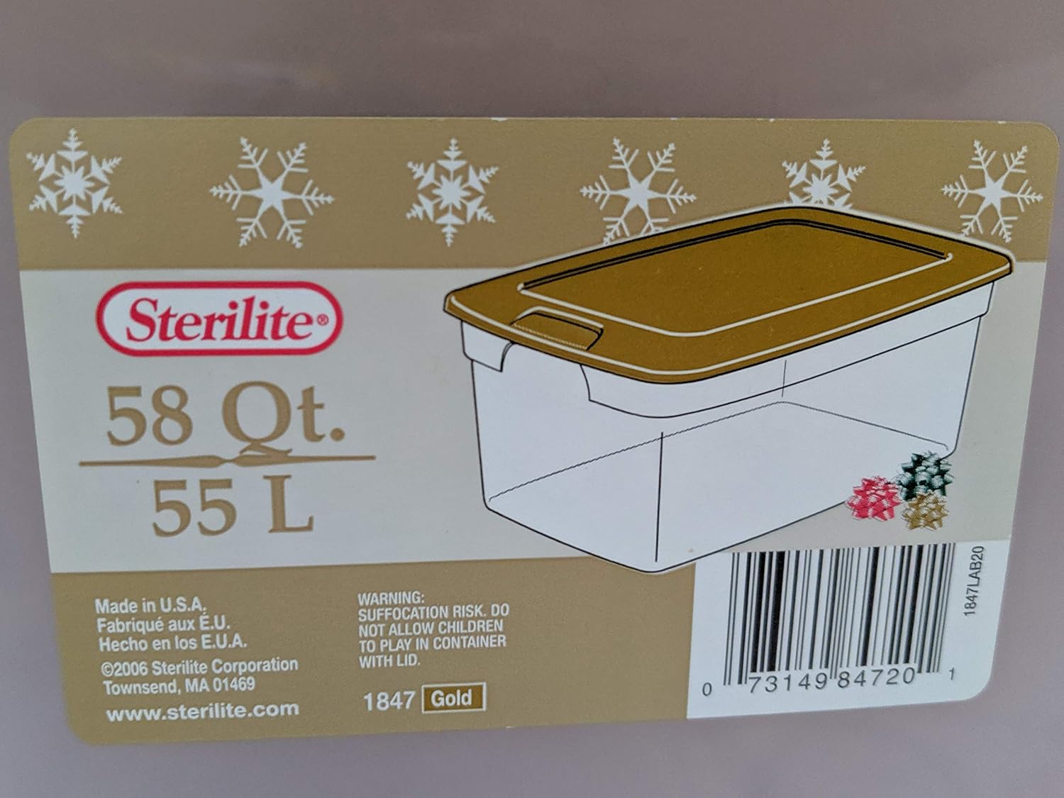 Amazon Com Sterilite 58 Quart Holiday Ornament Storage Bin Gold