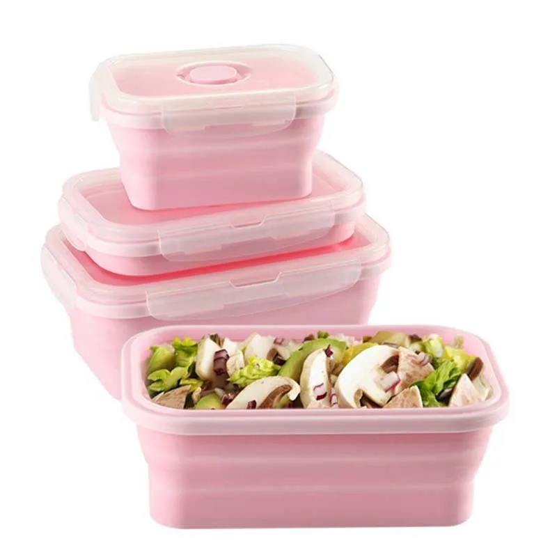 4 Pcs Silicone Collapsible Food Storage Container Folding Lunch
