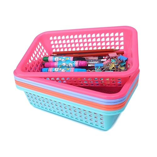 Three Mini Household Colored Storage Plastic Basket Set Of