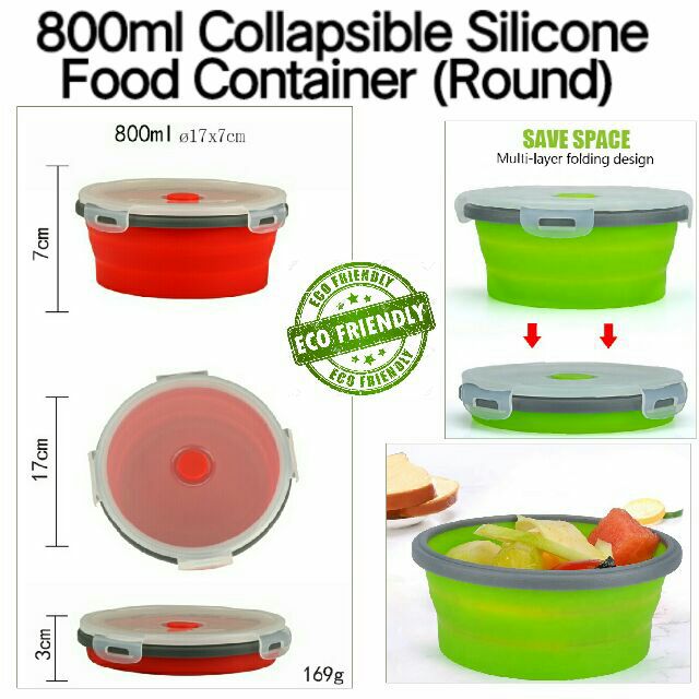 800ml Collapsible Silicone Food Container Round Eco Friendly