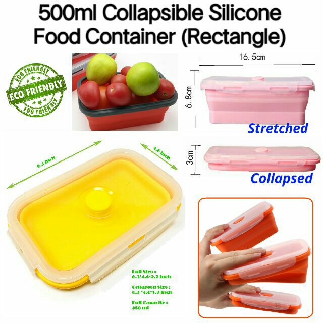 500ml Collapsible Silicone Food Container Rectangle Eco Friendly