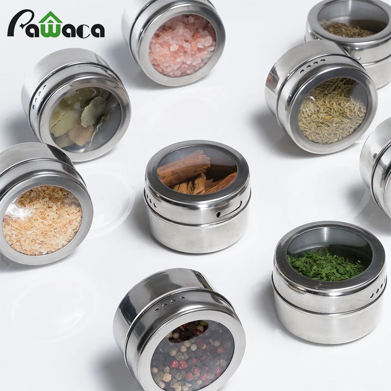 3pcs Set With Base 304 Stainless Steel Cooking Seasoning Spice Jar
