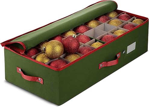 Zober Underbed Christmas Ornament Storage Box Zippered Closure And