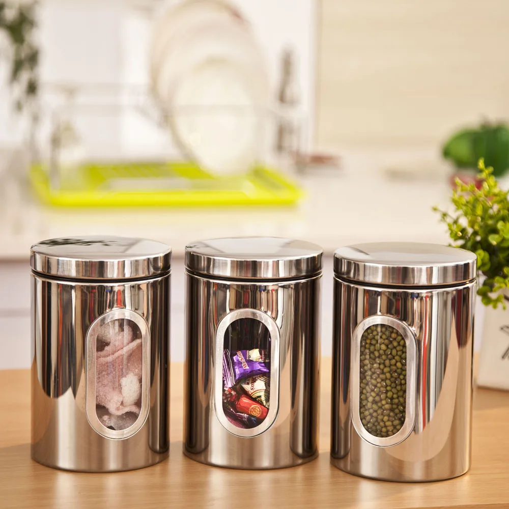 3pcs Stainless Steel Food Storage Canisters Jars Bottle Set With