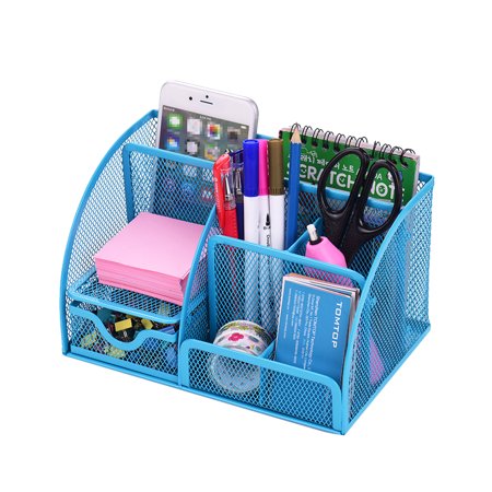 7 Storage Compartments Multi Functional Mesh Desk Organizer Pen