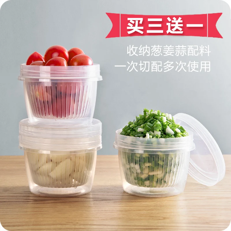 Food Storage Containers Round Drain Sealed Crisper Ginger Garlic