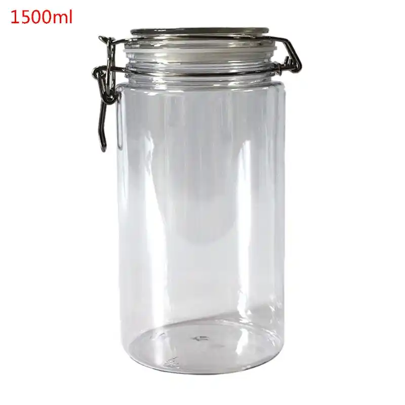 1500ml Plastic Round Clip Top Storage Jar With Airtight Seal Lid