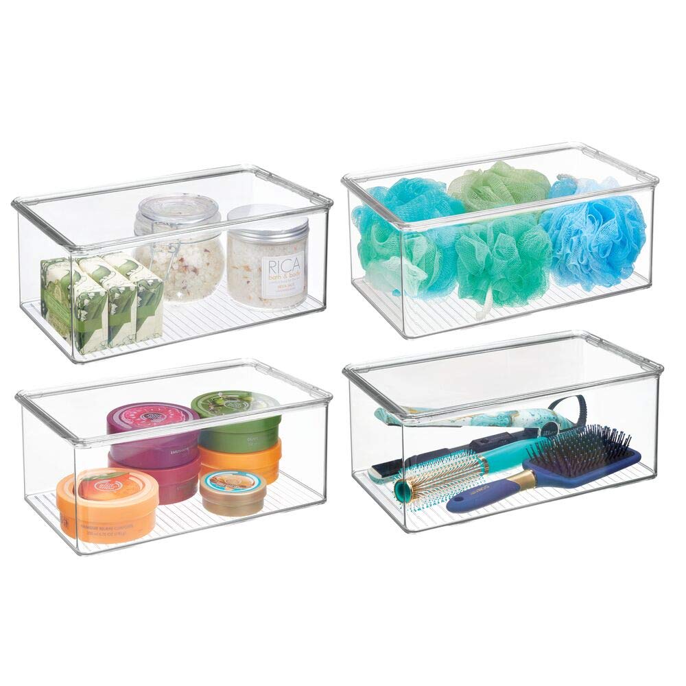 Mdesign Long Plastic Stackable Storage Container Bin Box Hinged