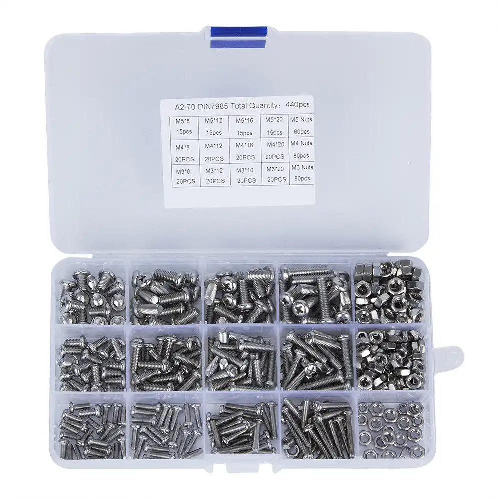 440pcs M3 M4 M5 304 Stainless Steel Hex Socket Cap Bolts Screw And