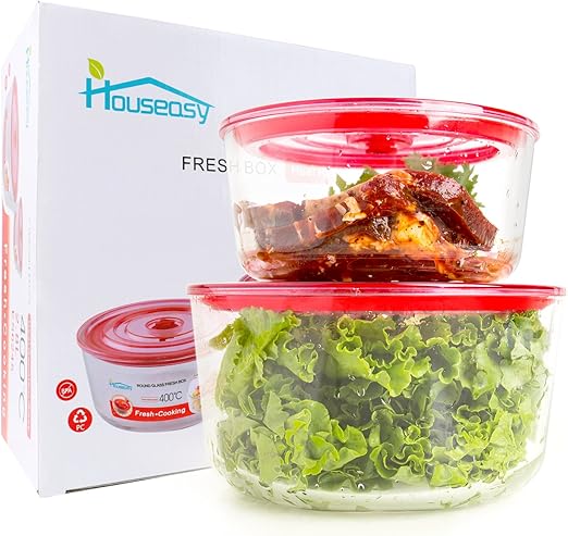 Houseasy Pyrex Glass Food Storage Container Set With Locking Lids