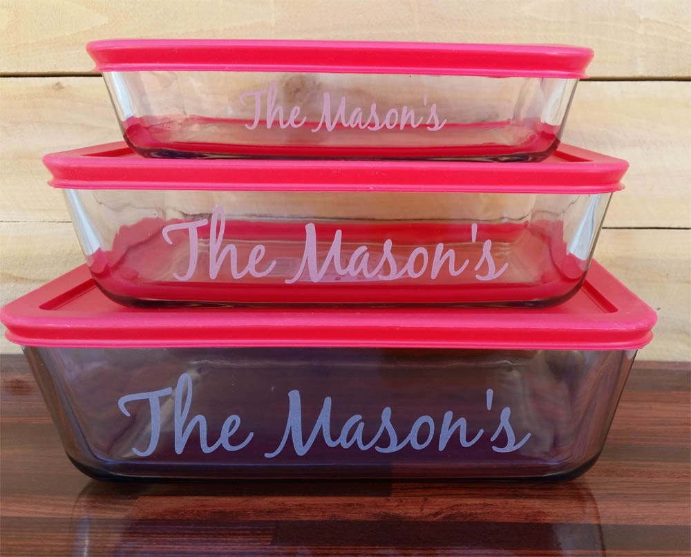 Noknoks Pyrex Glass Storage Dishes 6 Piece Engraved 3 6 11