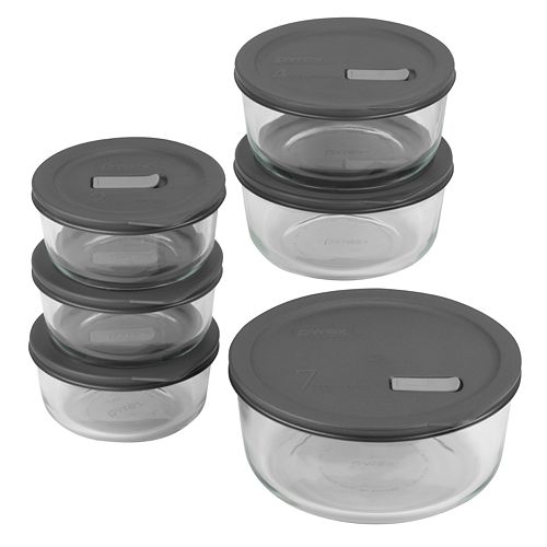 Pyrex 6 Piece Glass Food Storage Container Set With Gray Lids
