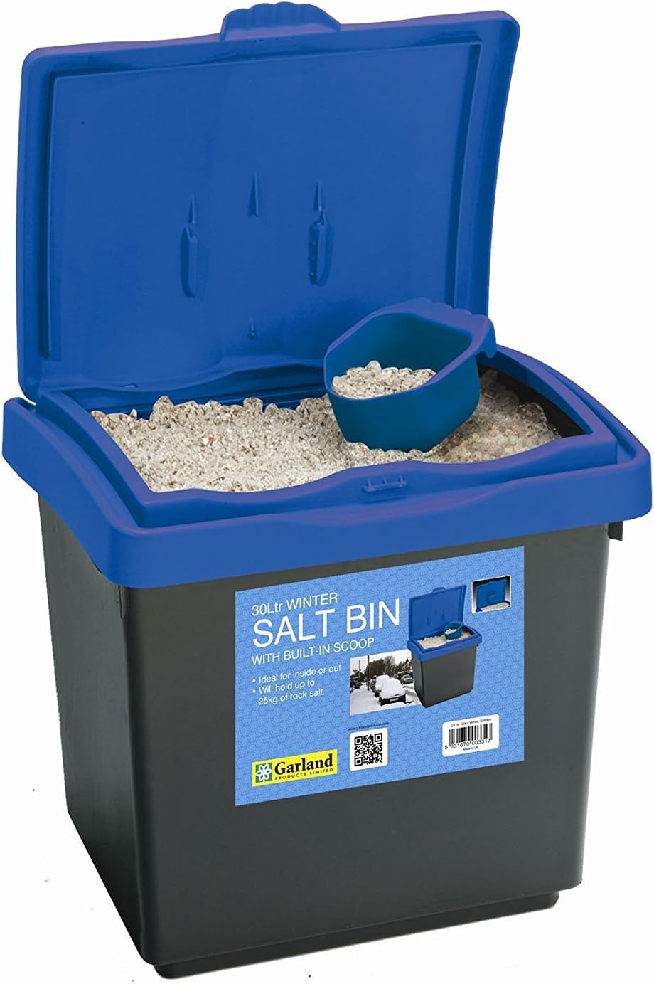 30l Winter Salt Bin Blue Lid For Storage Made From Plastic With