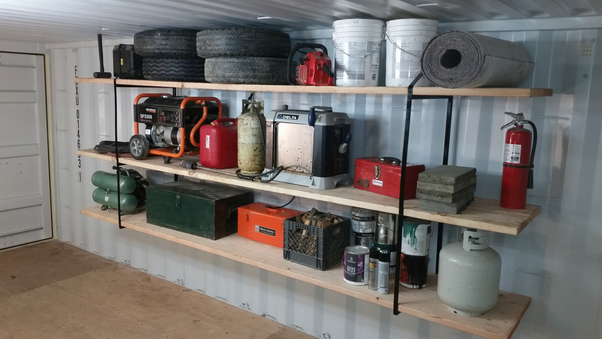 Made in the usa. Screws used here came from. We can equip your container with shelving prior to delivery.