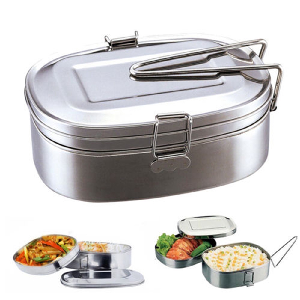 Stainless Steel Square Lunch Box Container Travel 1 2 Layer