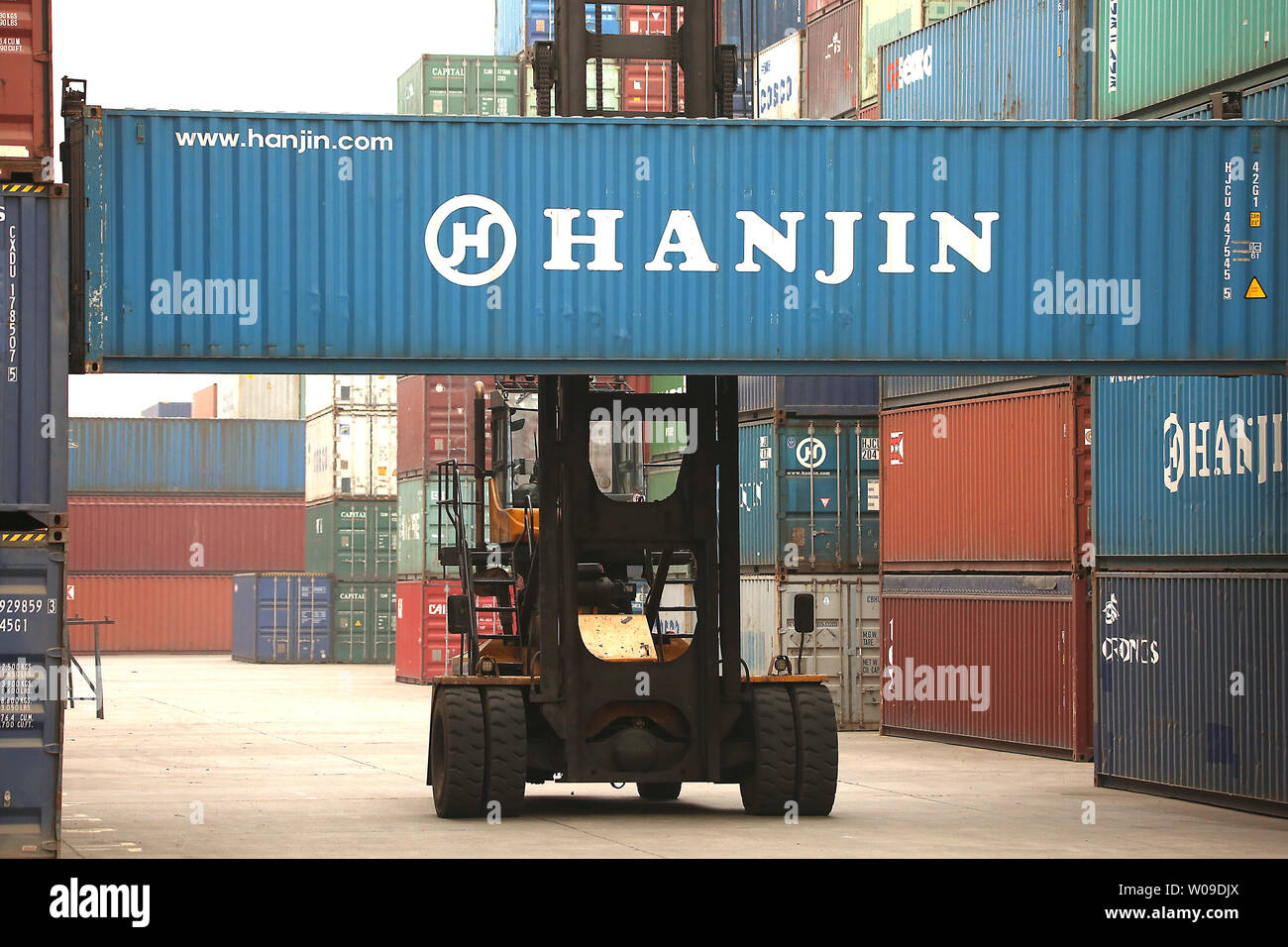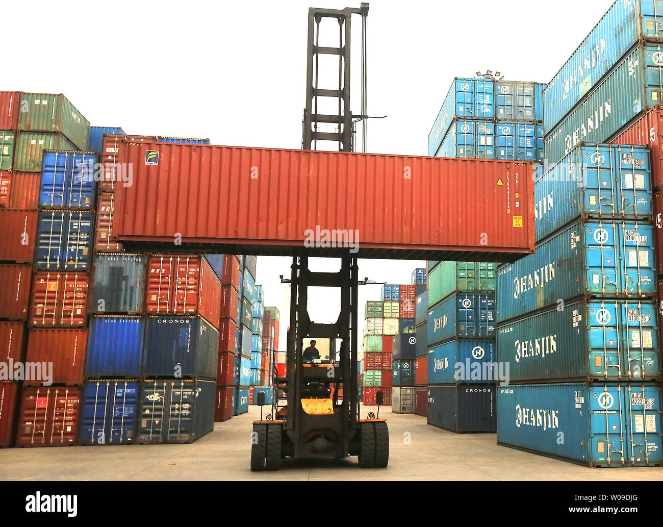 A Shipping Container Lift Crane Delivers A Container To A Storage