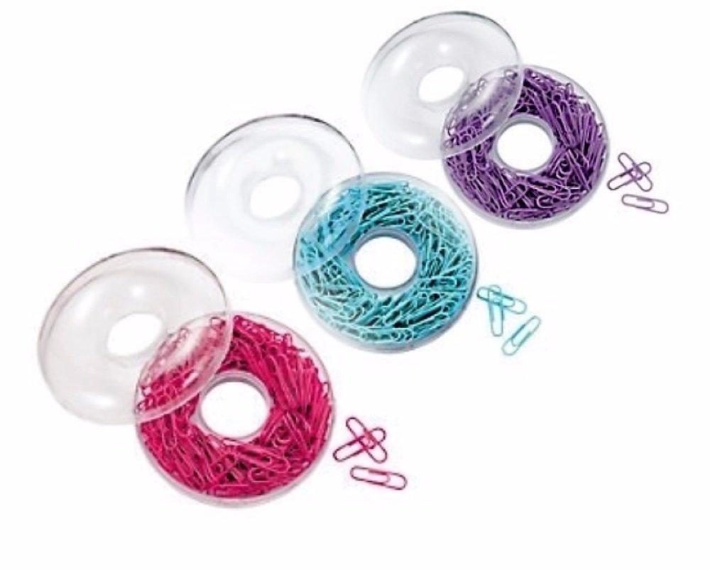 Office Depot Aqua Purple And Pink Paper Clips In A Donut Storage