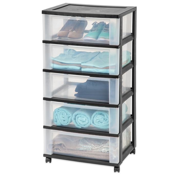 Iris 5 Drawer Wide Storage Cart In Black Bed Bath Beyond