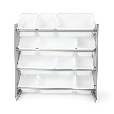 Tot Tutors Kids Toy Storage Organizer With 12 Plastic Bins Grey