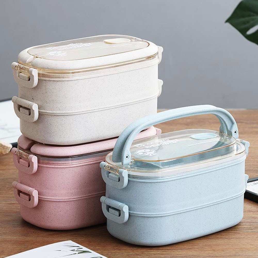 Ym 3063 Double Layer Wheat Straw Lunch Box Bpa Plastic Food