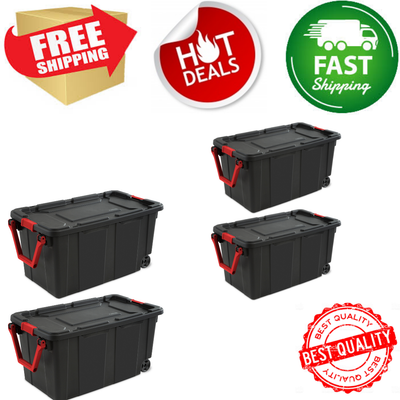 Wheeled Tote Plastic Storage Container Box 40 Gal 2 Pack Organizer