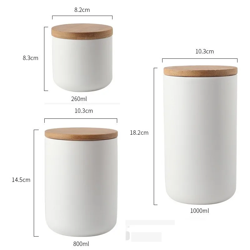 Nordic Style Ceramic Canister With Airtight Wooden Lids Food