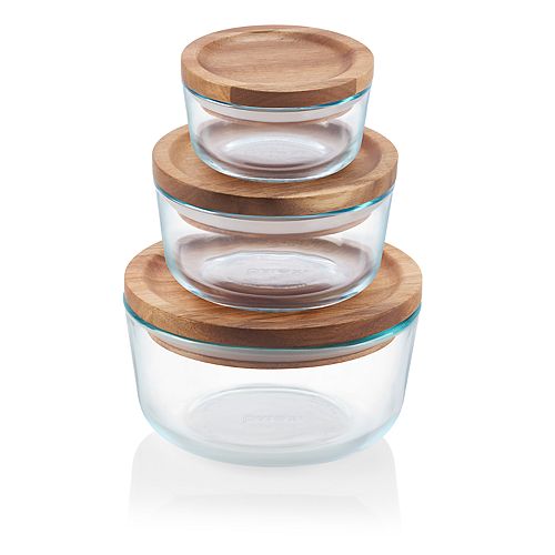 Pyrex 6 Pc Storage Set With Wooden Lids