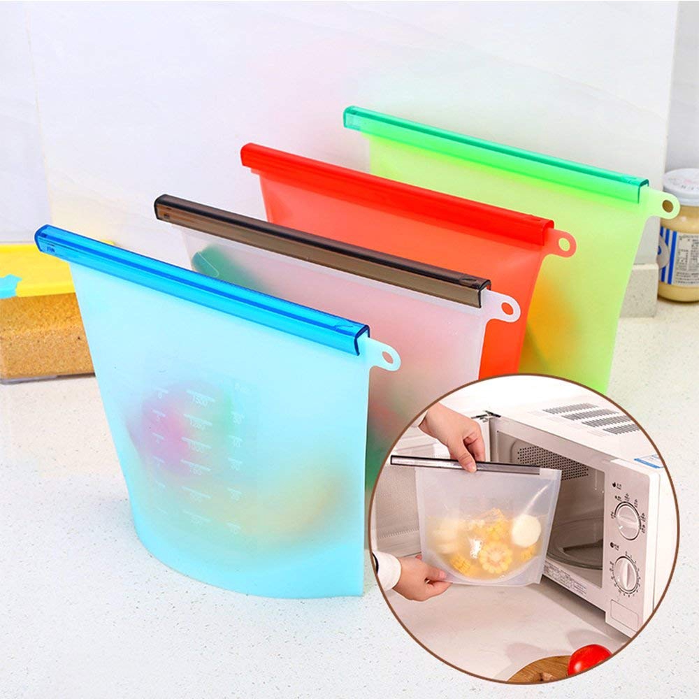 Silicone Food Storage Bag Ziplock Bags 4 Pcs Freezer Storage